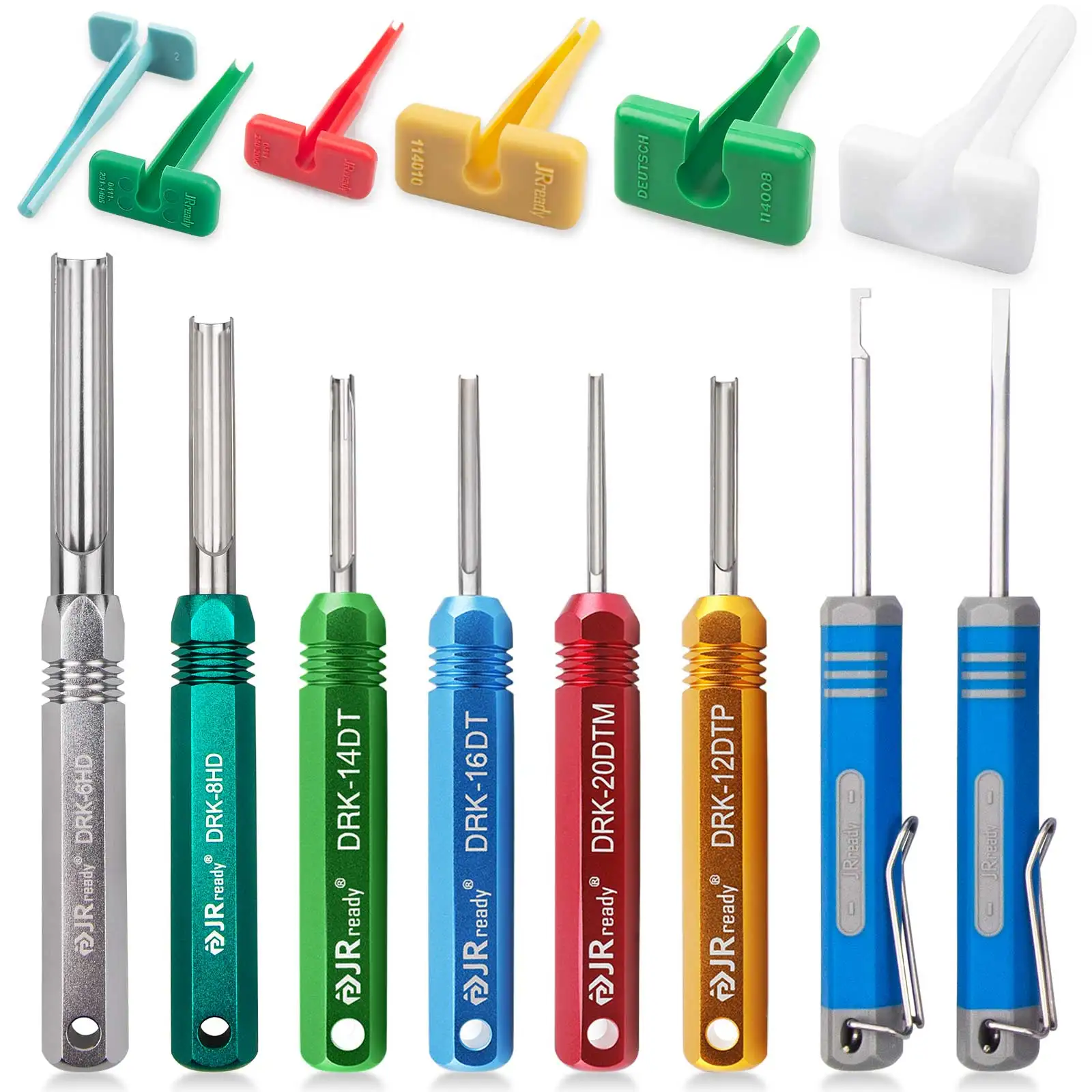 Универсальный набор инструментов ST5206 используется для снятия клемм Deutsch для сплошных и штампованных контактов 4 #8 #12 #16 #20 # , разъемов серии DT DTP DTM, AEC, DTV, DRB, HDДанный набор очень прост в использовании, обладаем малым весом, изготовлен из высококачественных материалов, что позволяет использовать его без повреждений изоляции, уплотнений корпуса разъема